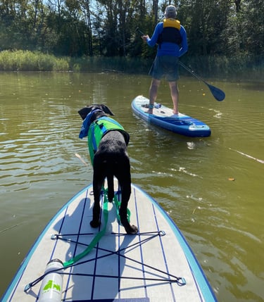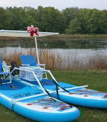 Float on 2 paddle-boards, 2 kayaks or a mini catamaran