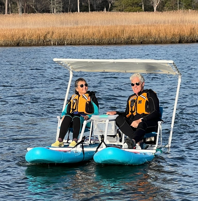 A new, unique & fun way to explore waterways together: A SEATED & ELECTRIC MINI CATAMARAN!